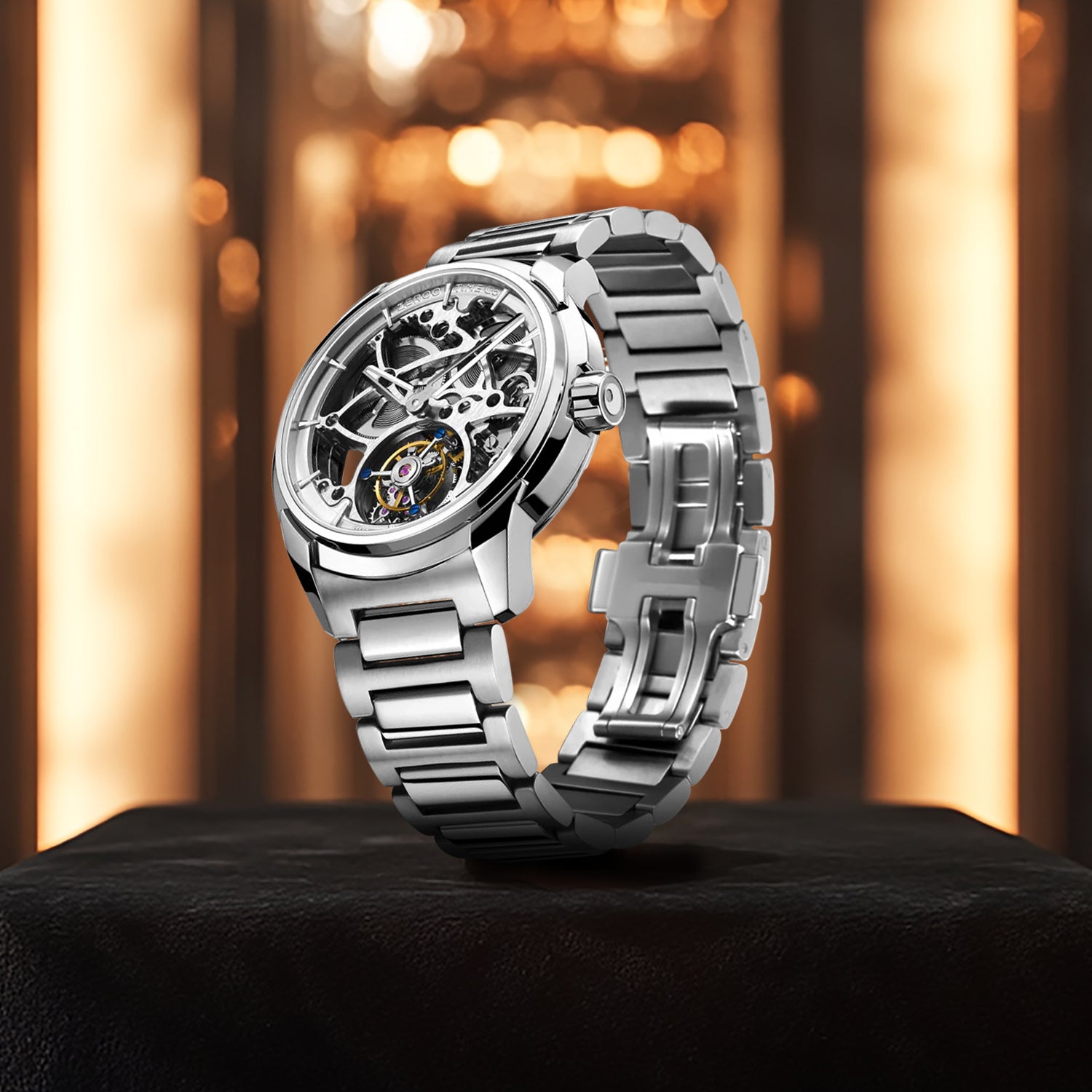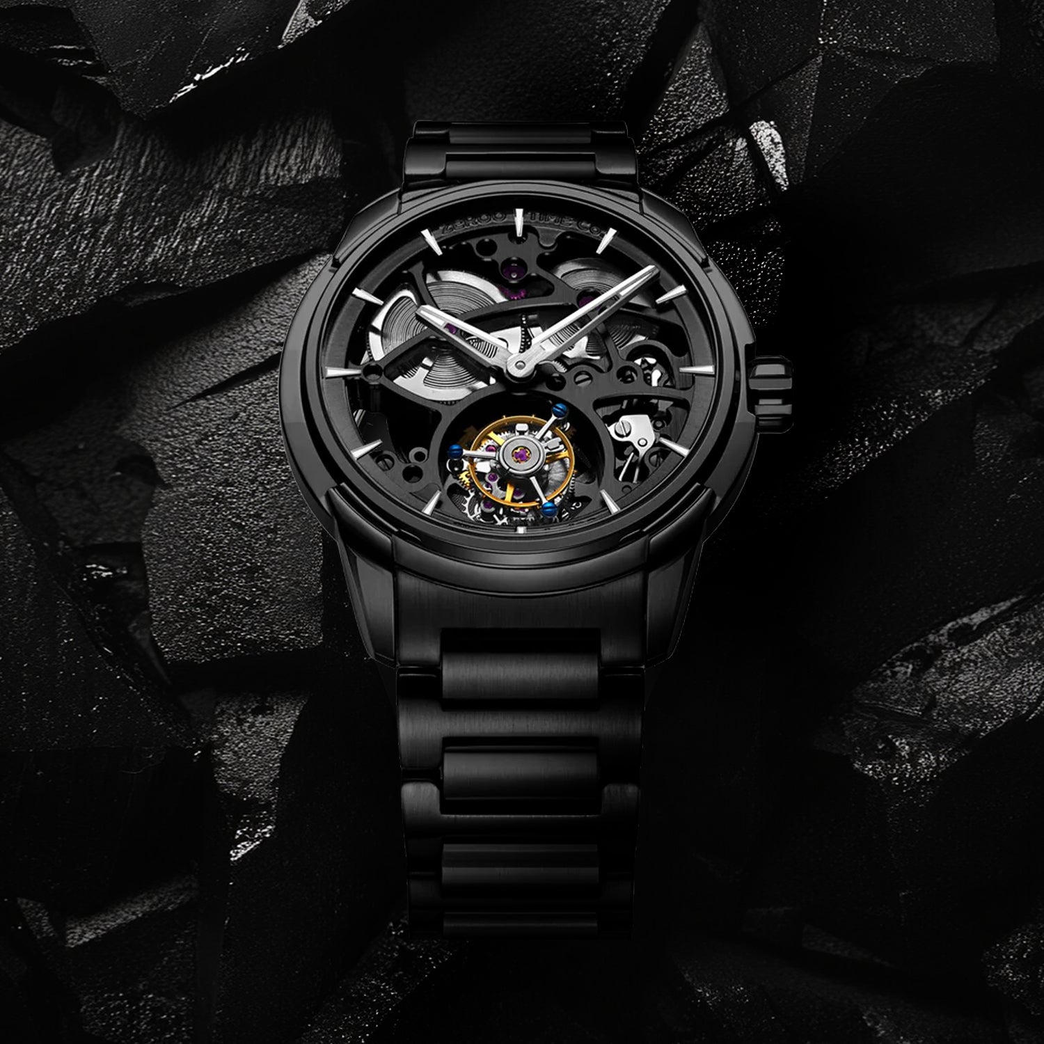 Erleben Sie Eleganz und Präzision mit The Leo , der ersten Uhr mit automatischem Skelett-Tourbillon- Uhrwerk von ZEROO. Angetrieben von einem gravierten automatischen Pendelrotor mit 72-stündiger Gangreserve, präsentiert diese Uhr ein dynamisches Skelettdesign. Gefertigt aus Saphirkristallglas und einem maßgeschneiderten Gehäuse und Armband aus 316L-Edelstahl, vereint sie nahtlos Stärke, Raffinesse und mechanische Kunstfertigkeit.