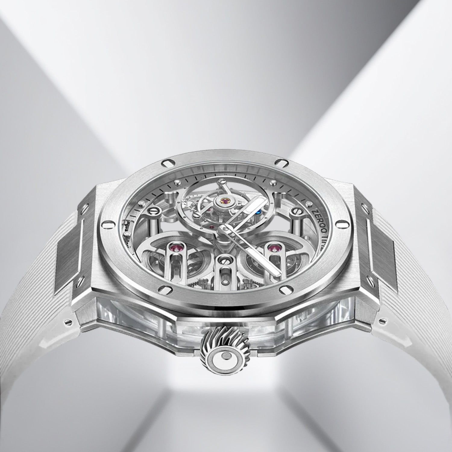Der Index ist mit einem neuen Zifferblattrahmen gestaltet. Die Transparenz und Härte der mechanischen Uhr wurden verbessert.