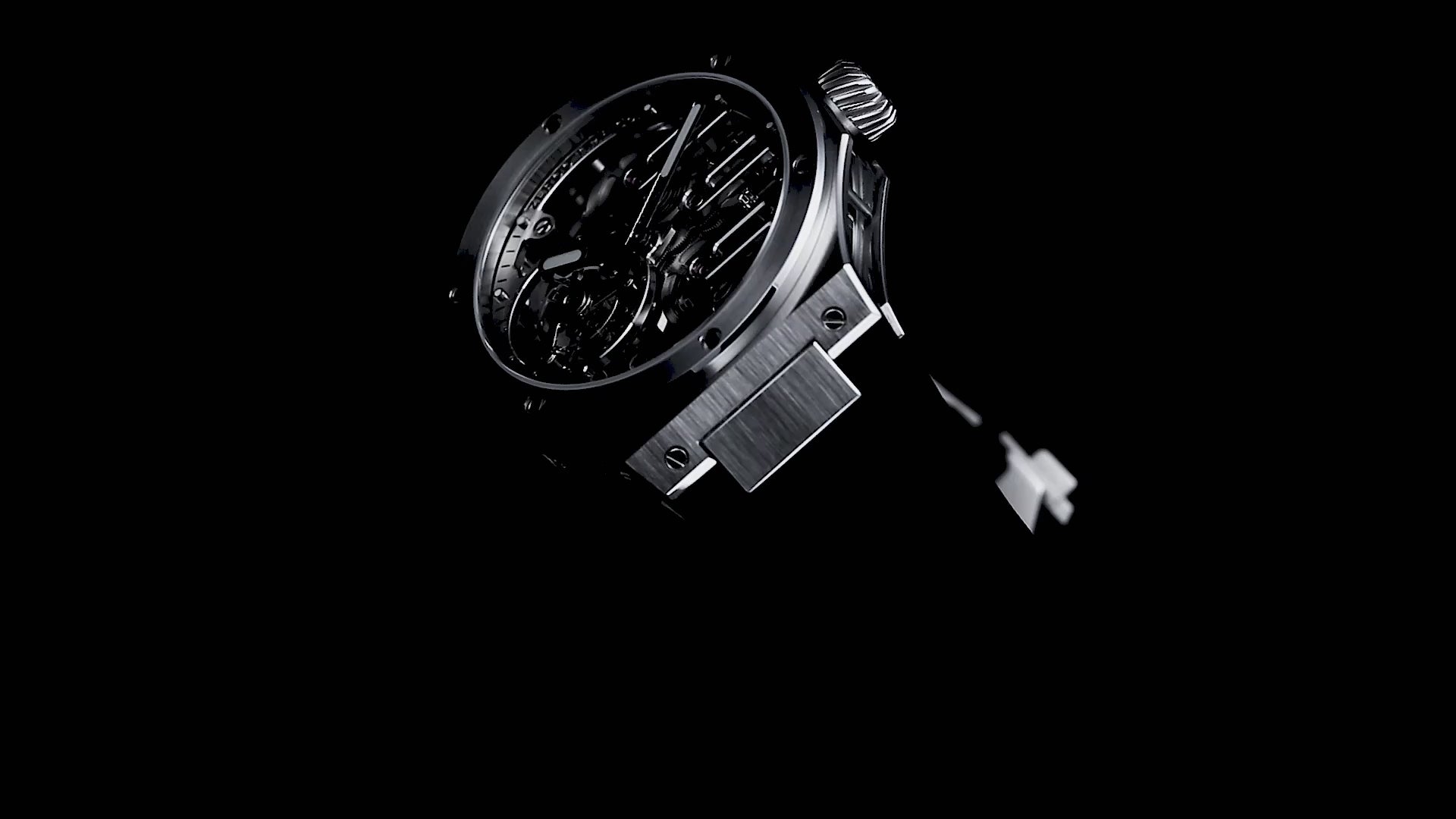 Das Uhrwerk mit zwei Federhäusern treibt das spiralförmige fliegende Tourbillon an und verfügt über eine Gangreserve von 60 Stunden.
