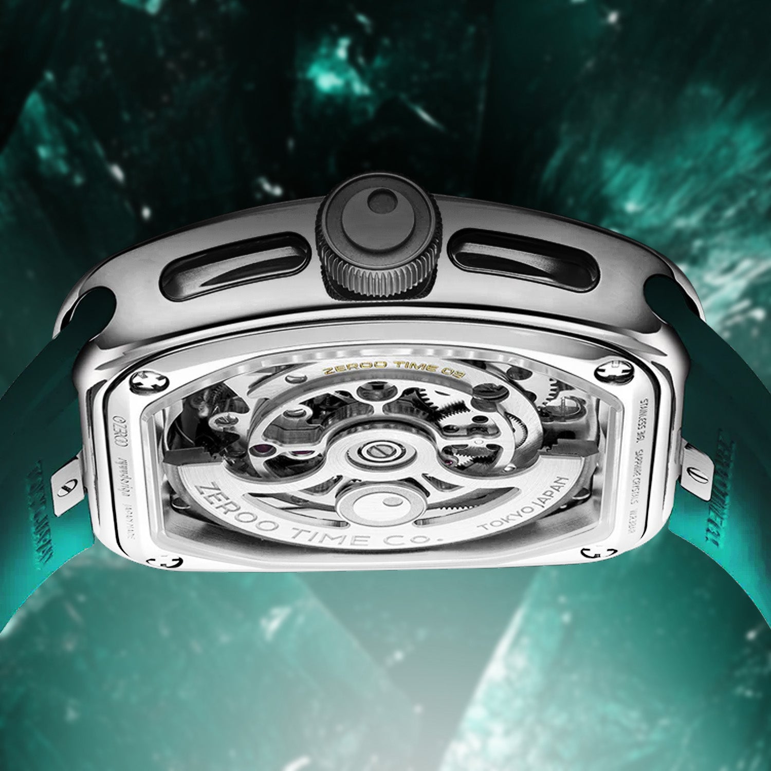 Die Rückseite ist skelettiert, sodass Sie den wunderschönen Rotor bewundern können, der speziell für dieses Modell entwickelt wurde. Wenn Sie Ihren Arm bewegen, dreht sich der Rotor unter dem Einfluss der Schwerkraft gleichmäßig, und diese Rotationsenergie zieht die Antriebsfeder durch das Getriebesystem auf.
