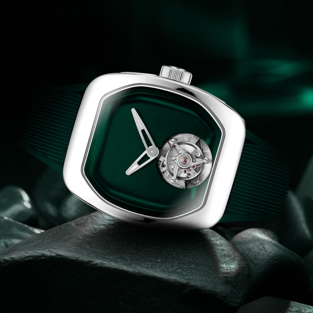 Lernen Sie die T9 kennen, ein Meisterwerk der Uhrmacherkunst. Dieses Modell kombiniert ein fortschrittliches automatisches Tourbillon-Uhrwerk mit einer raffinierten freischwingenden Hemmung und sorgt so für beispiellose Präzision und Zuverlässigkeit. Das elegant geschwungene, tonnenförmige Gehäuse unterstreicht die zeitlose Schönheit des Designs, während die minimalistische Ästhetik traditionelle Elemente in einem zeitgenössischen Stil neu interpretiert.